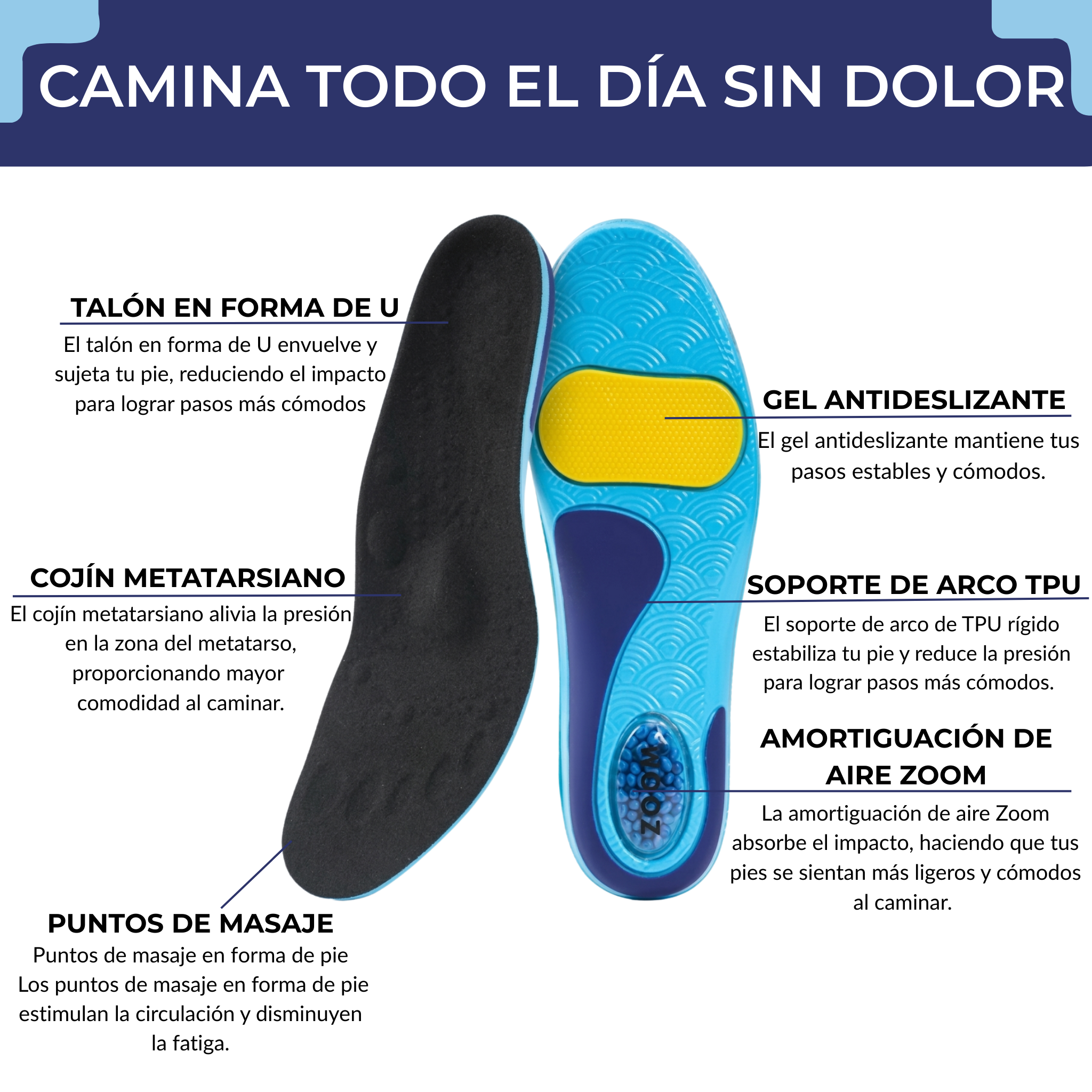 Camine con comodidad y alivio desde el primer paso.